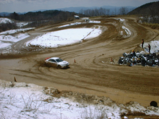ご覧の通りのコテコテ路面。A4の4WD勢もなかなか苦労していました。前進はするけど曲がれない・止まれない。クルマが重いから難しいのでしょうね。写真はVento'sの秋山選手かな?(すんません・・・データがなく不明です) |